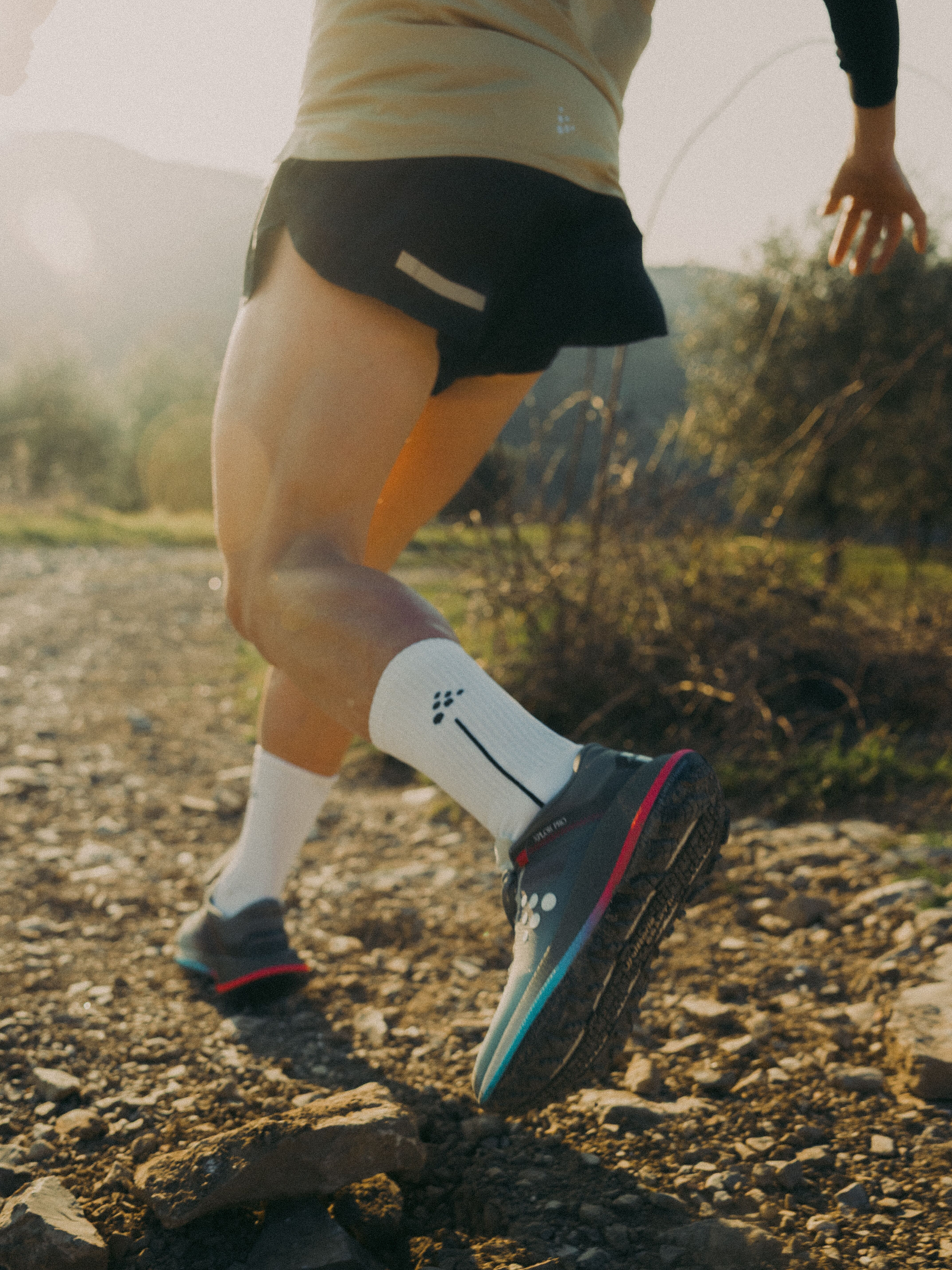 Das leichte Obermaterial aus gewebtem Mesh ist mit TPU-Garnen verstärkt und bietet so optimale Haltbarkeit, Atmungsaktivität und Schmutzresistenz. Ein stützendes Gitterfutter im Mittelfußbereich sorgt für sicheren Halt auf jedem Gelände.