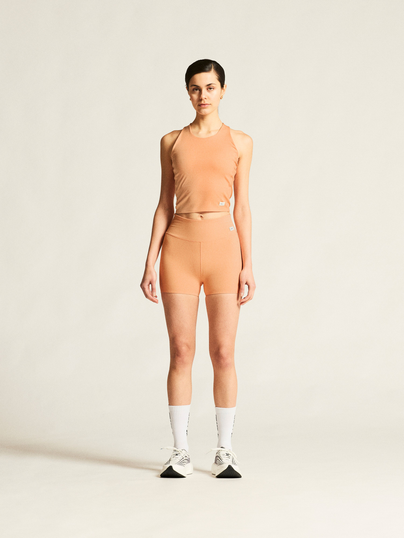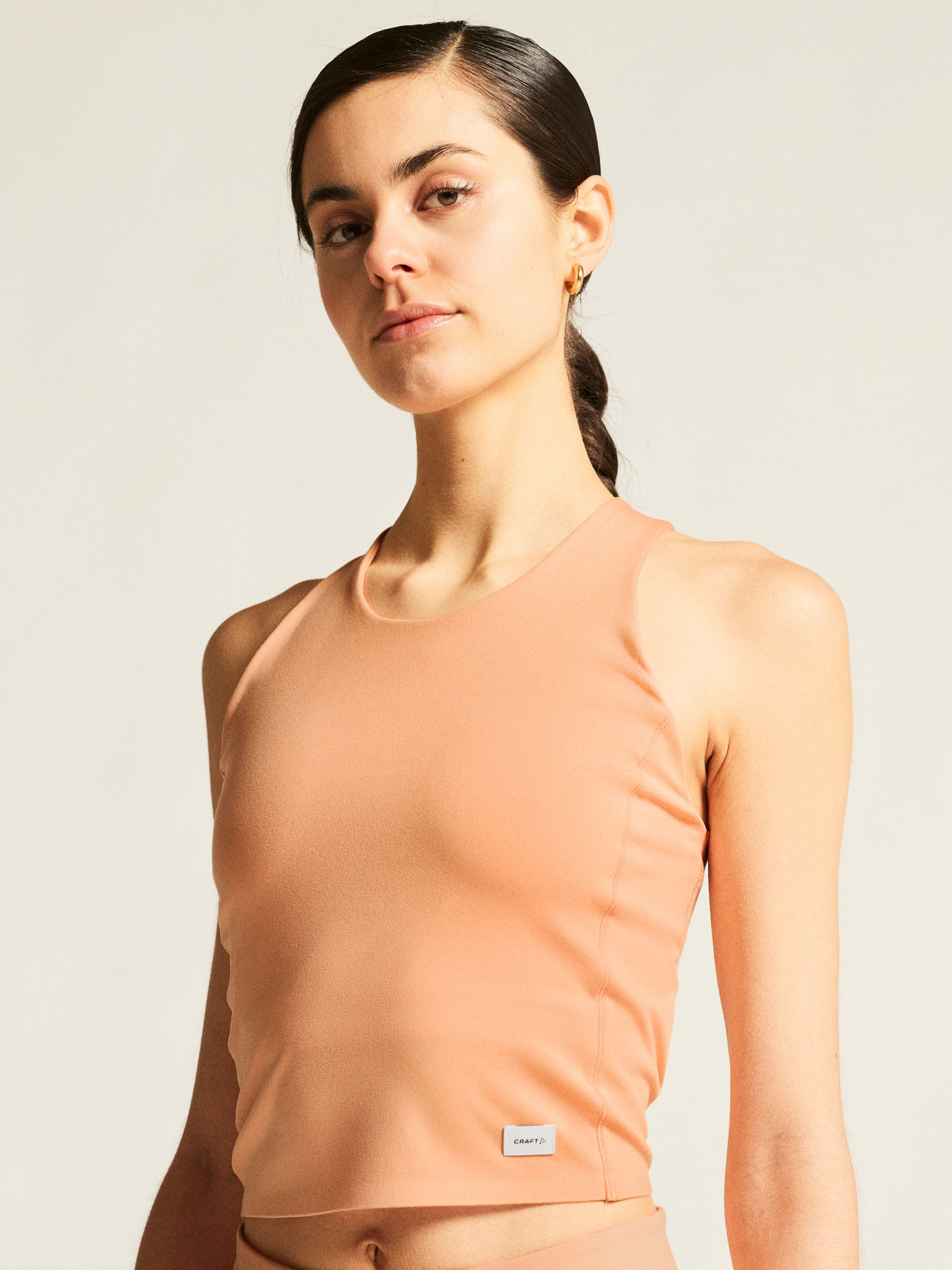 Conçu pour un confort ultime, ce vêtement d'entraînement polyvalent est confectionné à partir d'un mélange de polyester extensible avec une surface peau de pêche, offrant une sensation luxueusement douce, une excellente gestion de la température corporelle et une excellente élasticité. Le débardeur présente également une coupe courte et des bretelles croisées dans le dos. Une manifestation de haute qualité de fabrication dans chaque détail.