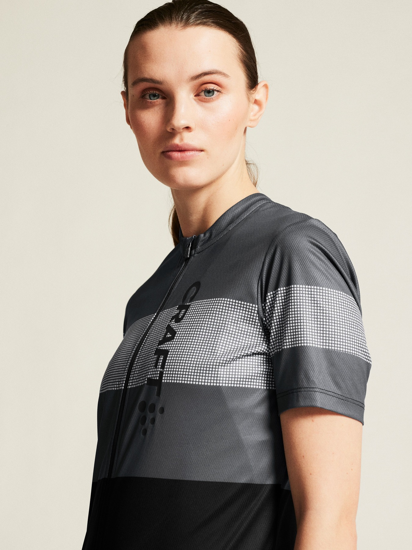 Soft, stretchy and functional bike jersey for cycling enthusiasts of all kinds. Provides great moisture transport and features full front zipper, three back pockets and double-edge band at back bottom hem for a secure fit.