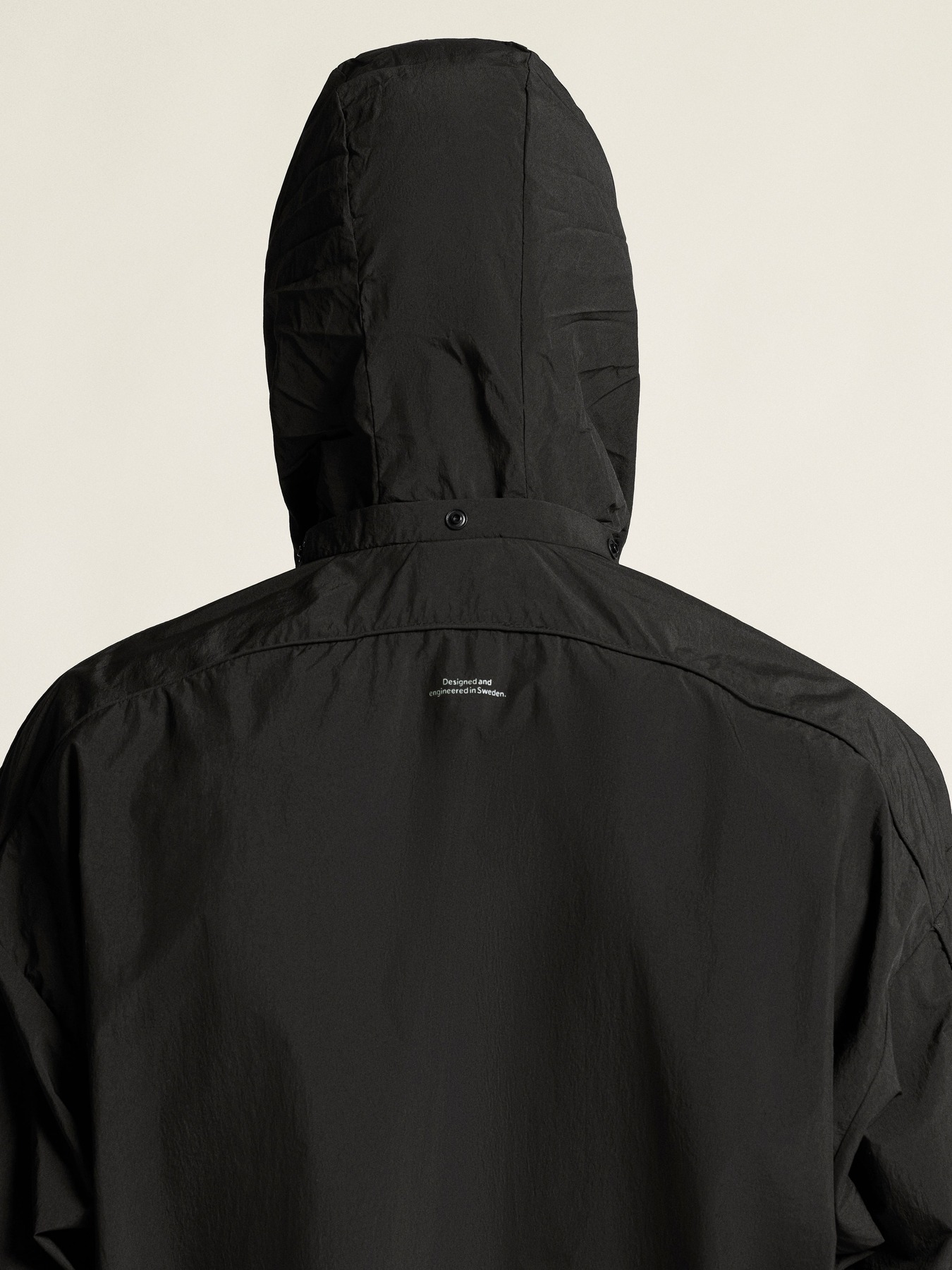 • Capuchon op te bergen in de kraag met knoopjes in de nek
