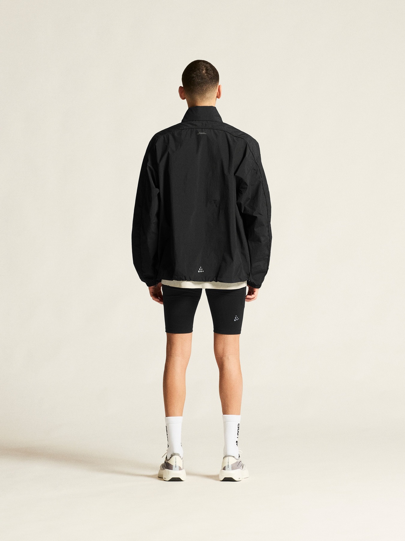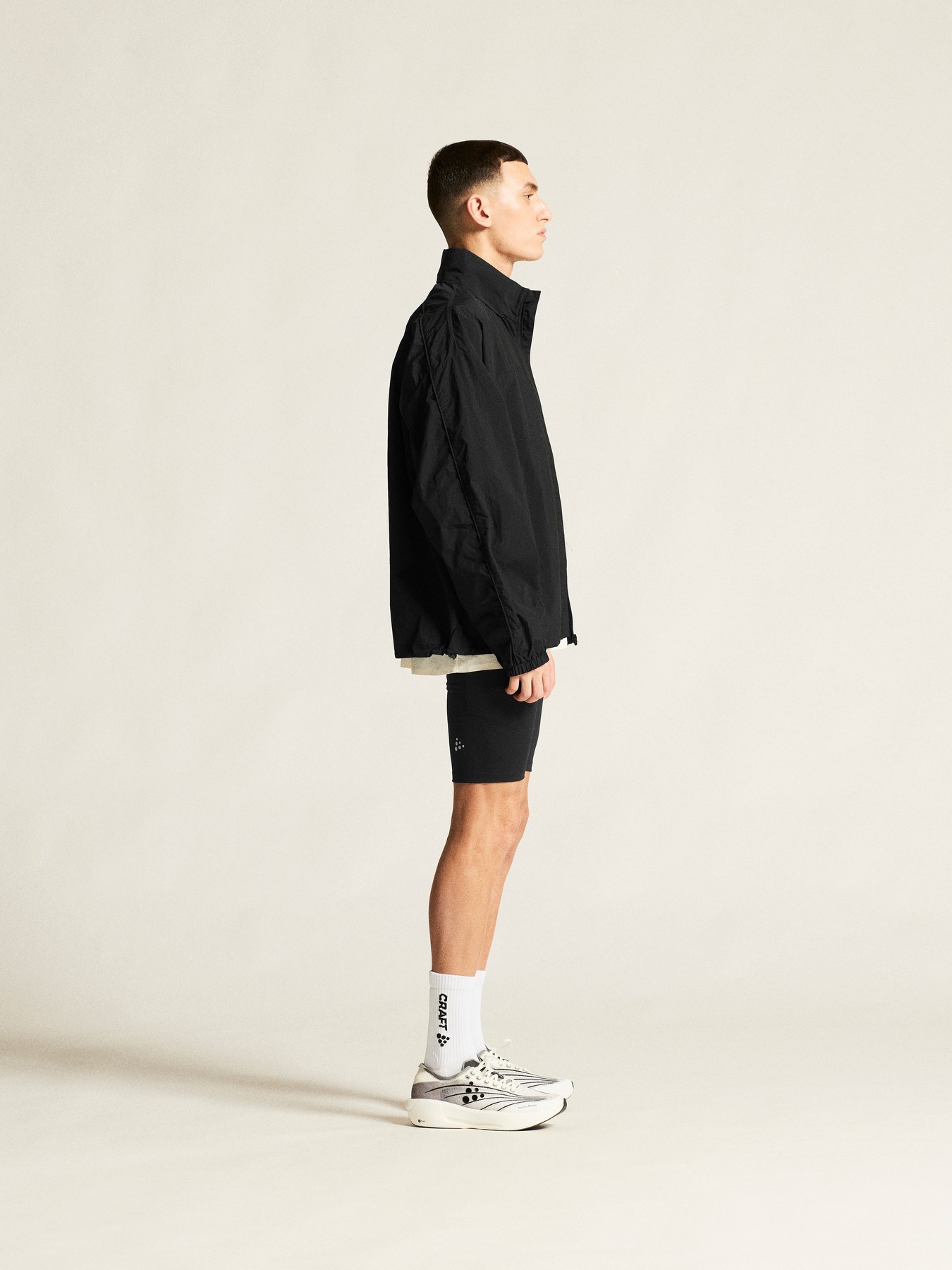 Geïnspireerd door vintage hardloopkleding is dit oversized jack gemaakt van gerecycled polyamide dat uitstekende ventilatie en vochtregulatie biedt. Twee zijzakken met ritssluiting bieden veilige opbergruimte voor sleutels, energierepen en andere benodigdheden, terwijl twee verstelbare trekkoorden onderaan de zoom zorgen voor een pasvorm op maat. Het jack heeft ook een opvouwbare capuchon die netjes in de kraag kan worden opgeborgen. Ontworpen met het oog op flexibiliteit kan het volledig worden opgeborgen in het linkervak, waardoor het verandert in een klein tasje dat gemakkelijk aan de heup kan worden gedragen voor snelle toegang bij wisselende weersomstandigheden.