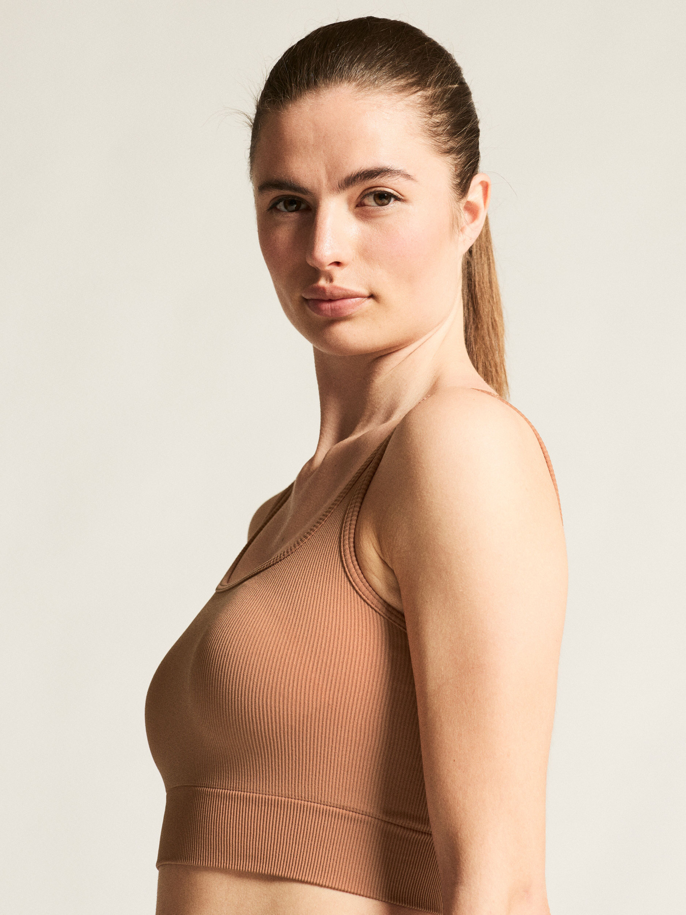 Collective Rib Sports Bra är en mångsidig och bekväm sportbehå med tight passform och vadderade kupor som passar för såväl träning som vardagsbruk.