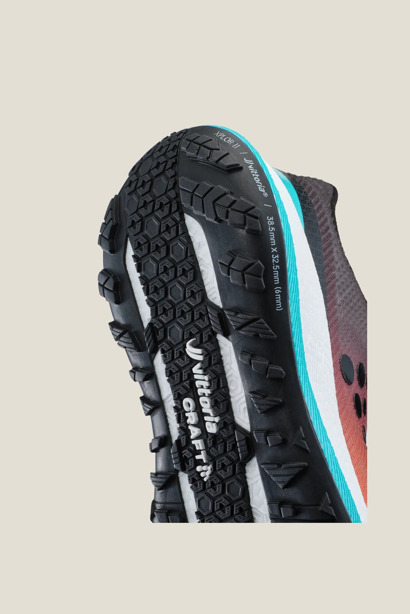 Innovativ yttersula utvecklad i samarbete med den världsledande cykeldäckstillverkaren Vittoria, med inspiration från däckmönstren hos Terreno Dry och Terreno Mix. Resultatet är en unik sula med hög slitstyrka och exceptionellt grepp som möjliggör löpning i högt tempo på de flesta typer av underlag.